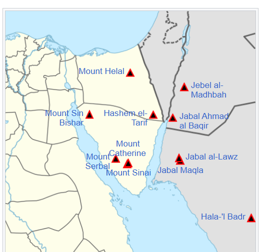 O polohe hory Sinaj-Horeb existuje samozrejme množstvo alternatívnych teórii, pričom viacero hypotéz ju kladie mimo Sinajský polostrov.