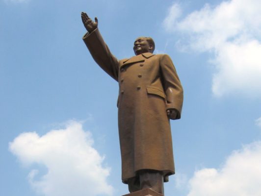 Pri zrode Komunistickej strany Číny stál Mao Ce-tung, oficiálne nazývaný Wej-ta tou-šou (Veľký kormidelník). V roku 1918 začal pracovať v knižnici Pekingskej univerzity, kde sa zoznámil s marxistickou ideológiou. Legenda o tom, ako sa súdruh Mao stal osvieteným marxistom, bola svojho času (50. roky) nahovorená pre rozhlas aj v Českoslovenku. Herečka v nej nasladnutým hlasom popisovala, ako sa mladý Mao spýtal vrchného knihovníka, či by mu vedel povedať, ktorá kniha je najdôležitejšia na svete. Múdry starec mu vytiahol z police brožúrku Karla Marxa a Friedricha Engelsa – Manifest komunistickej strany a súdruh Mao omráčený záplavou intelektuálneho svetla, vychádzajúceho z útlej knižočky, konvertoval na marxistickú vieru.