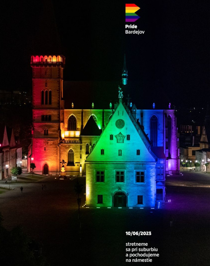 Okrem zavádzania organizátorov, ktoré by azda nejakí nenávistníci mohli nazvať aj klamstvom, sme si všimli aj propagačný materiál k dúhovému pochodu. Doslova na ňom žiari Bazilika svätého Egídia a bardejovská radnica nasvietená v dúhových farbách. Minimálne v tomto prípade by sme od vedenia mesta čakali, že zakročí a nedovolí, aby sa aspoň katolícka národná pamiatka z 13. storočia zneužívala na podporu LGBT ideológie. Organizátori si však komunikáciu s mestom pochvaľovali a zhodnotili ju ako „hladkú“.