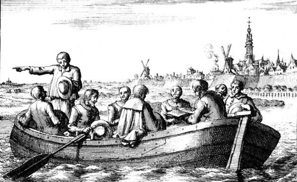 Titulný ilustračný obrázok k 30. časti Heréz a bludov – ilustrácia Jana Luykena (1685) s názvom „Anabaptisti čítajú Bibliu“, zdroj: wikimedia commons