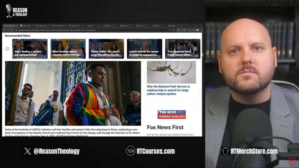 Poriadne rozčúlený bol mladý youtuber Nicholas Cavazos na svojom kanáli The Traditional Thomist. „Vatikán sa poškvrnil 1400 praktizujúcimi homosexuálmi“, ktorí vpochodovali priamo do Baziliky sv. Petra a „poškvrnili ju tým, že propagovali svoju ohavnosť pýchy, svoju ohavnosť sodomie.“ Nicholas nechápe, ako môže byť takáto špina za múrmi miesta, kde sa „kedysi prechádzali svätci“, kde sa „spievavali nábožné chorály“. Ešte viac ako samotný pochod homosexuálov ho však hnevá tolerancia zo strany tých, ktorí by mali voči tomuto zakročiť. Ukazuje video nadšeného transsexuála vo Vatikáne, či mužov držiac sa v bazilike za ruky. „To je škandalózne, absolútne škandalózne, pápež Lev,“ pokračuje Nicholas, „toto je zlé, nemorálne, cirkevní predstavitelia.“ Youtuber pokračuje: