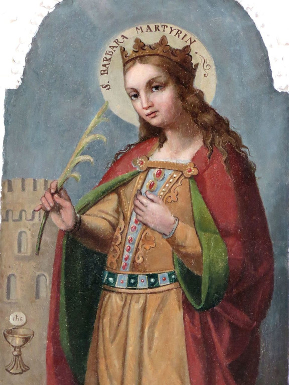 Svätá Barbora z Nikomédie Narodila sa na konci 3. stor. a žila v prvých dekádach 4. stor. Informácie o jej živote pochádzajú z legiend, bola údajne dcérou zámožného pohanského úradníka a šľachtica Dioskura. Bola veľmi krásna a vzdelaná. Otec sa ju snažil vydať a uchrániť pred vplyvom kresťanstva. Keďže dcéra udržiavala kontakt s kresťanmi, nechal ju uväzniť vo veži. Dcéra prijala tajne krst a počas otcovej neprítomnosti vo svojom väzení nechala vyraziť aj tretie okno, čo malo symbolizovať Najsvätejšiu Trojicu. Keďže dcéra sa odmietala vzdať viery, otec ju predviedol pred rímskeho sudcu a ten nechal sv. Barboru zbičovať.