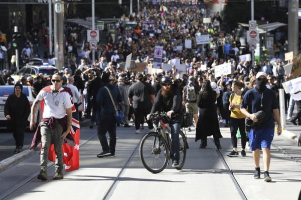 Obyvatelia Queenslandu a Nového Južného Walesu boli tvrdo zasiahnutí prísnymi hraničnými pravidlami. V Sydney bolo len nejakých 250 protestujúcich, čo je však zaujímavé, miestny policajný hovorca, Mal Lanyon, uviedol, že polícia zastavila 38-tisíc áut (!) smerujúcich na protest do mesta, „pre porušenie lockdownových nariadení“.
