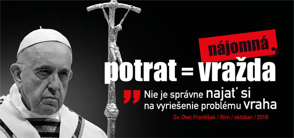 Na prvom bilborde je pritom zobrazený pápež František a jeho výrok z októbra 2018, ktorý znie: „Nie je správne najať si na vyriešenie problému vraha!“ Týmto výrokom odkazovala súčasná hlava rímskokatolíckej Cirkvi na fakt, že „potrat je nájomná vražda“, čo je taktiež na bilborde uvedené.