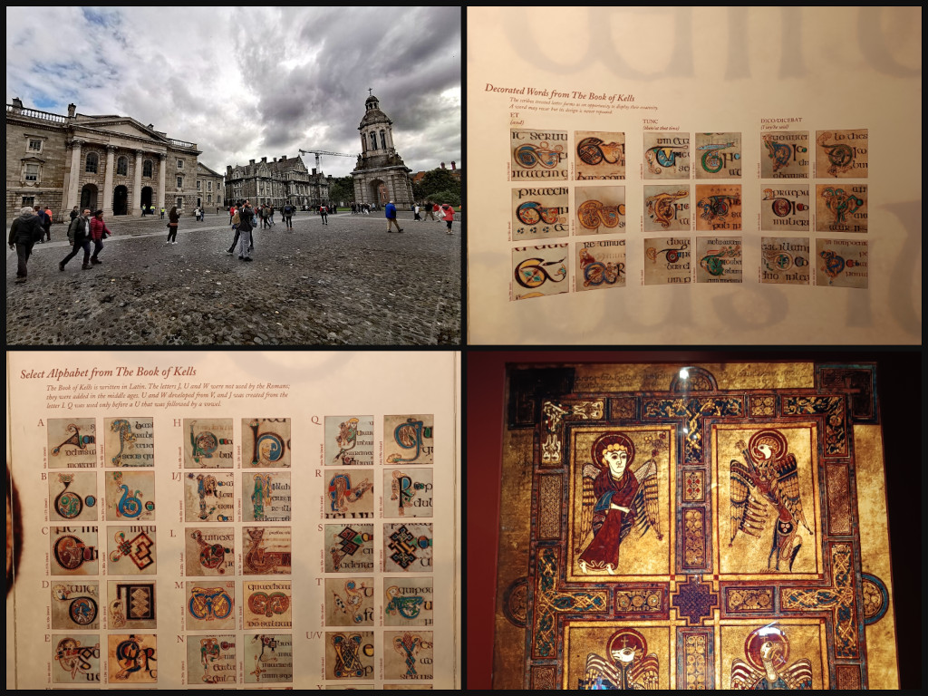 Posúvame sa v čase o ďalších dvesto rokov – na univerzitu, kde sa nachádza výstava Knihy z Kellsu (Book of Kells) – knihy evanjelií napísaných ozdobnou a čiastočne ilustrovanou latinčinou z 9. storočia, ktorej originál tam prechovávajú ako národný klenot. Myslel som si, že je to skôr svetská knižnica…
