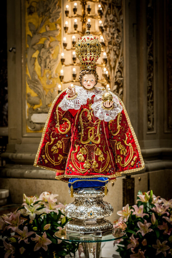 Také toto Jezulátko má řadu nádherných šatů zdobených drahokamy, což svědčí o vděčnosti věřících za milosti, kterých se jim dostalo. Jeho hlavu navíc zdobí dle přání papeže Lva XIII. a Vatikánské kapituly od roku 1897 velká koruna.