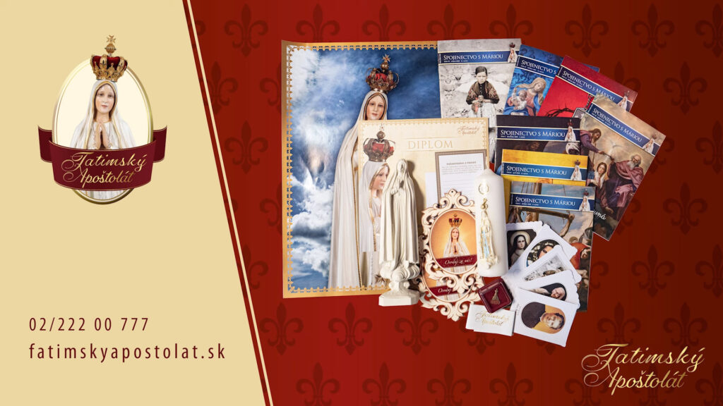 Pridajte sa teda k našim pravidelným podporovateľom a staňte členmi Fatimského Apoštolátu – prihlásiť sa môžete na tel. čísle 02/222 00 777.