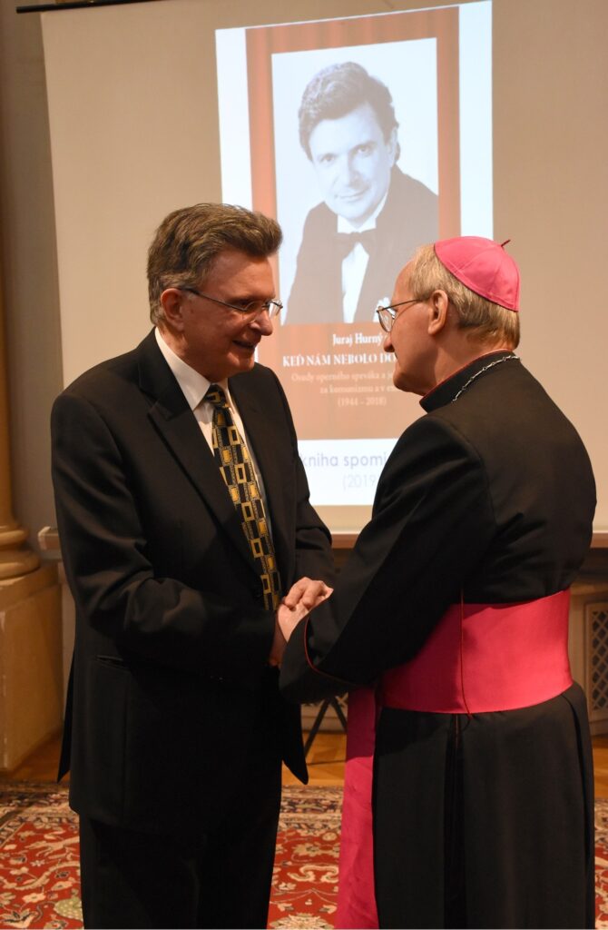 V zahraničí šíril dobré meno slovenskej vokálnej kultúry, doma bol na čiernej listine. Syn politického väzňa Juraj Hurný (*1948, Humenné) sa vzoprel komunistickej diktatúre a brány bratislavskej opery, ktorá vtedy verne slúžila režimu, sa pred ním zatvorili. Nádejného operného sólistu a absolventa odborov hra na trúbke a spev na bratislavskom Konzervatóriu zo dňa na deň preradili do zboru len preto, že bol antikomunista a praktizujúci katolík. Talentovaný spevák našiel nový domov v rakúskom Grazi, kam nelegálne emigroval spolu s rodinou v roku 1977. Z Rakúska odštartoval svoju medzinárodnú opernú kariéru, s tenorovými áriami prevažne talianskych majstrov dobyl aj Španielsko, Švajčiarsko či Ameriku. Po tom, čo svoje tenorové vysoké cé zavesil na klinec, pustil sa do písania kníh. Juraj Hurný je autorom troch autobiografických kníh Keď nám nebolo do spevu: Osudy operného speváka a jeho rodičov za komunizmu a v exile, 1944 – 2018 (2019), Partizánska vražda v Rajeckej doline (2022) a Moje detstvo v Žemberovciach: Syn jáchymovského politického väzňa spomína na roky 1953 – 1959 (2024). Pracovníci Ústavu pamäti národa Silvia Haladová a Stanislav Labjak odborne spracovali korešpondenciu Juraja Hurného staršieho, otca slávneho tenora, z jáchymovských baní v monografii z roku 2022 s priliehavým názvom Vyprosený a vymodlený. V roku 2020 sa maestro Hurný stal laureátom Ceny Fra Angelica za prínos v oblasti hudobného umenia.