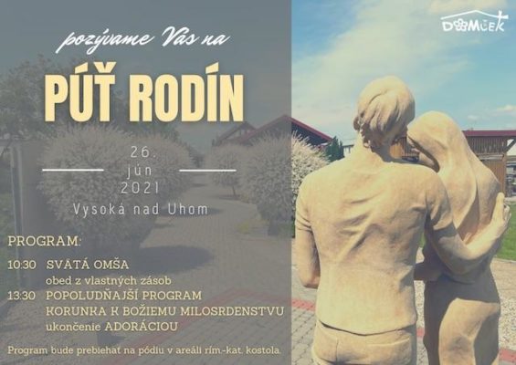 Vo Vysokej nad Uhom bude patriť posledná júnová sobota rodinám. V programe je svätá omša (o 10:30) a popoludňajší program (od 13:30) spojený s Korunkou Božieho milosrdenstva a adoráciou. Program bude prebiehať na pódiu v areáli rímskokatolíckeho kostola, avizuje plagát.